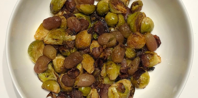 2. Less Decadent Brussels Sprouts, Bacon, and Grapes